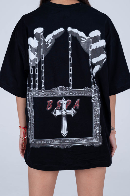 OVERSIZED T-SHIRT ''BORN AGAIN'' BLACK